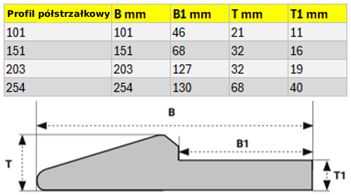 Profile półstrzałkowe mogą być również stosowane jako lemiesze. Poniżej znajdują się szczegółowe informacje dotyczące wymiarów profili półstrzałkowych.